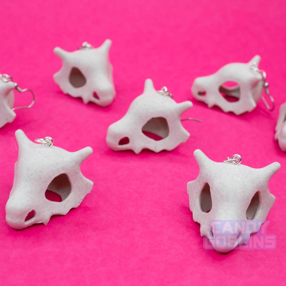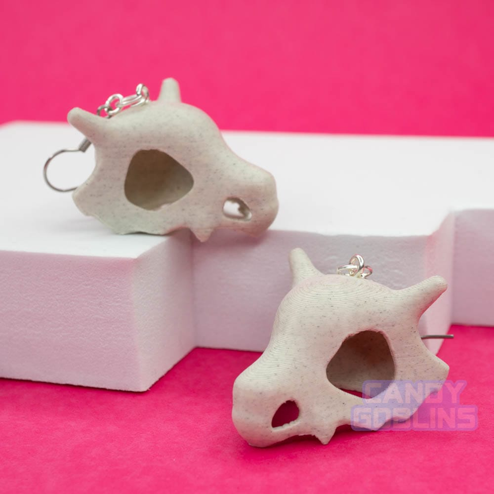 These cubone earrings are perfect for any Pokemon fan! They’re 3D printed by us using a special stone effect PLA giving them a realistic bone colour.